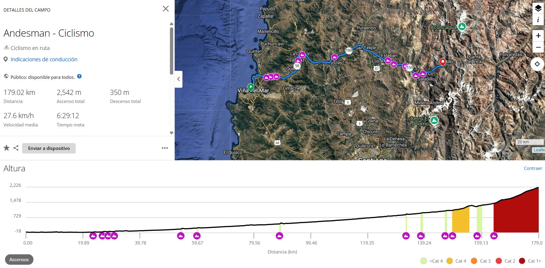 Un trazado largo, con desgaste progresivo y ascensos que exigen respeto, especialmente en los tramos finales rumbo a Portillo y el paso fronterizo. Mira la ruta en detalle en Garmin aquí.