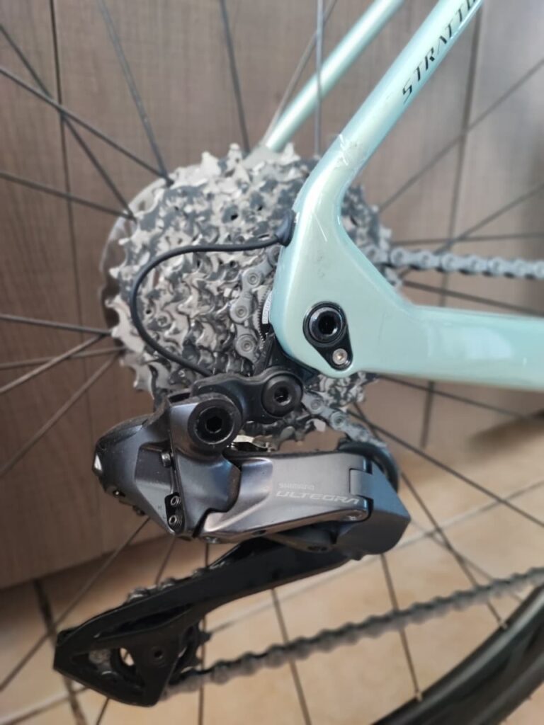 La polygon Strattos S8X es una bicicleta de carbono que trae cambios electrónicos Ultegra 12v Di2.