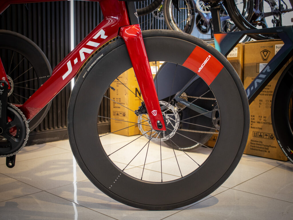 Este set entrega una clara ventaja aerodinámica, ideal para triatlón y contrarreloj.