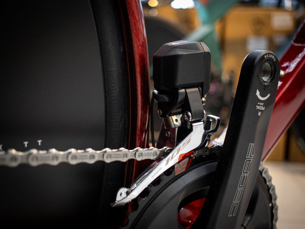 La Java Vittoria viene equipada con transmisión electrónica Shimano 105 Di2 R7170 de 12 velocidades, un grupo que entrega precisión, rapidez en los cambios y fiabilidad tanto en entrenamientos largos como en competencia.