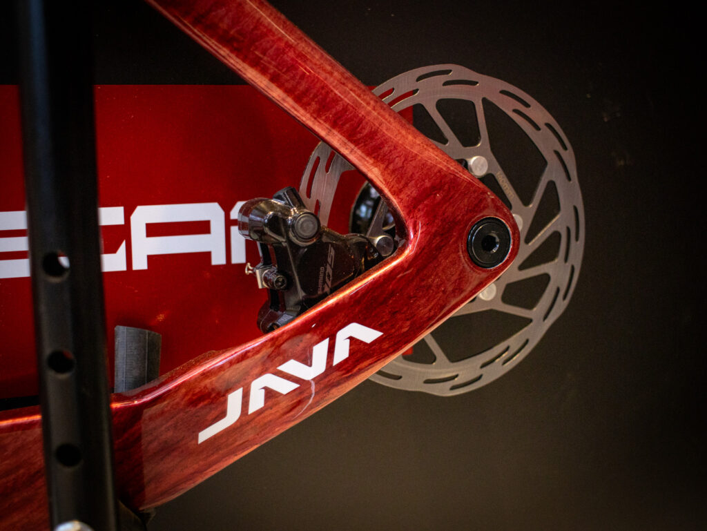 La Java Vittoria está diseñada para que el viento fluya, no para que te frene. Un ejemplo claro es la parte trasera del cuadro, que envuelve la rueda lenticular casi por completo, reduciendo al mínimo el espacio entre cuadro y rueda. Esto disminuye turbulencias y mejora la eficiencia aerodinámica, especialmente a alta velocidad.