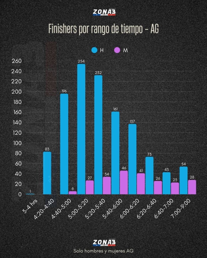 - Tiempo promedio mujeres: 4:19:42