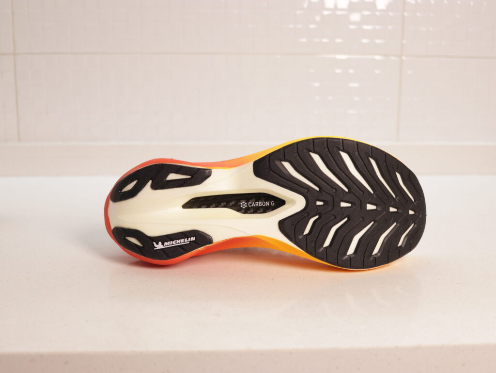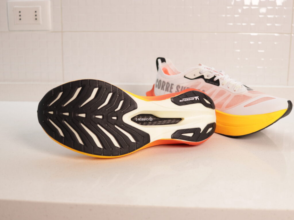 Otro de los elementos destacados de la Olympikus Corre Supra 2 es su suela desarrollada con inspiración en los neumáticos Michelin Pilot Sport.