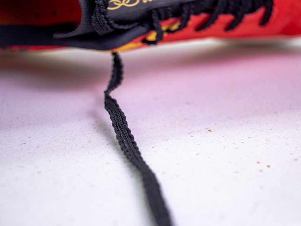 Otro detalle interesante son los cordones, que vienen con un tejido lateral especial que evita que el nudo se suelte mientras corres. Una vez que los ajustas, quedan firmes hasta el final del entrenamiento.