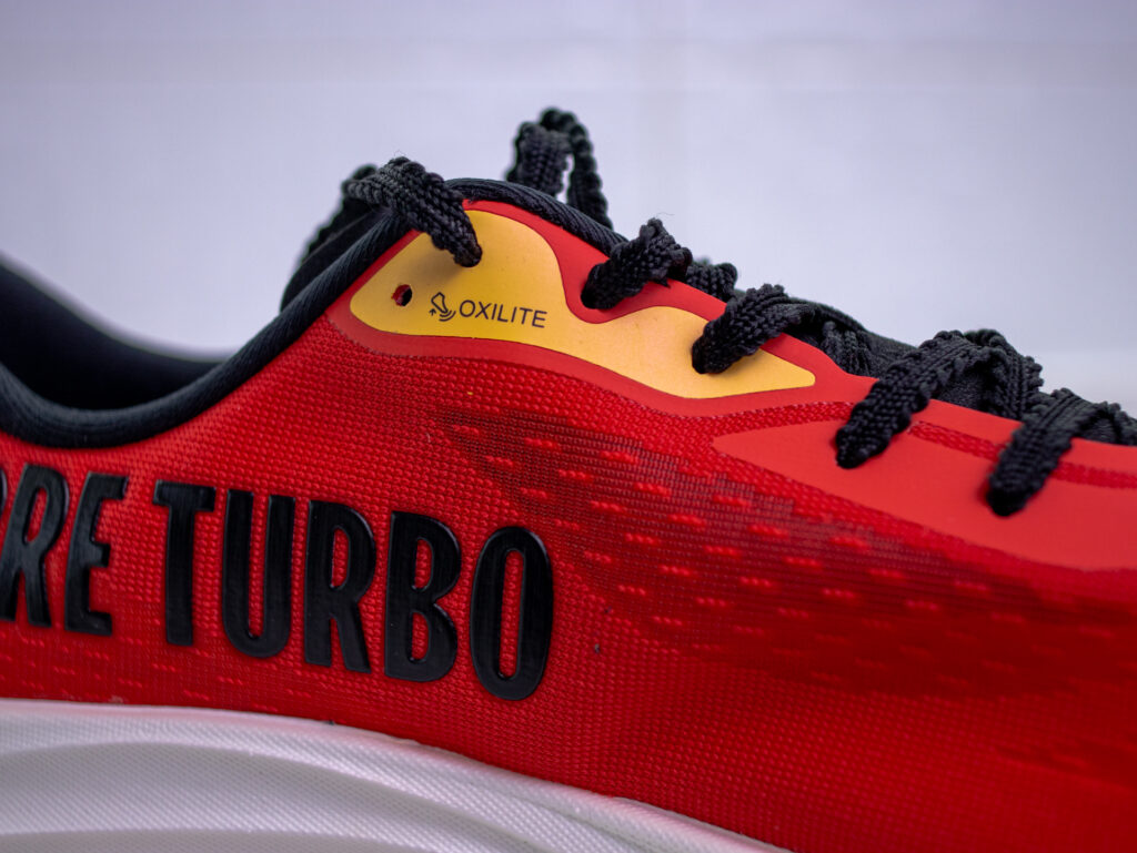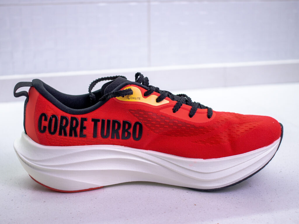 La parte superior de la Olympikus Corre Turbo está fabricada con Oxilight, una tecnología propia de la marca brasilera. Se trata de un material ultradelgado hecho con hilos de TPU y TPE, que combina tres cosas clave: