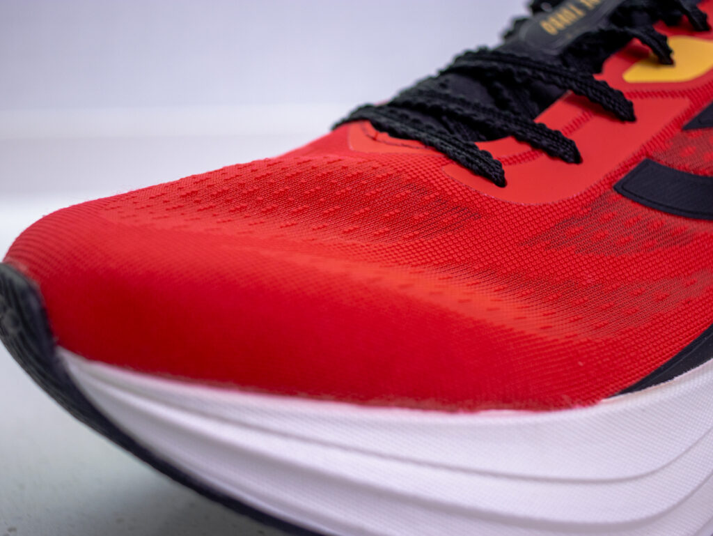 El upper es tan delgado que puedes ver a través del material, pero aun así es resistente y firme en la sujeción. Lo más sorprendente es el ajuste tipo calcetín, que abraza el pie sin puntos de presión y facilita la ventilación, ideal para correr en días calurosos o entrenamientos largos donde el pie suele acumular humedad.