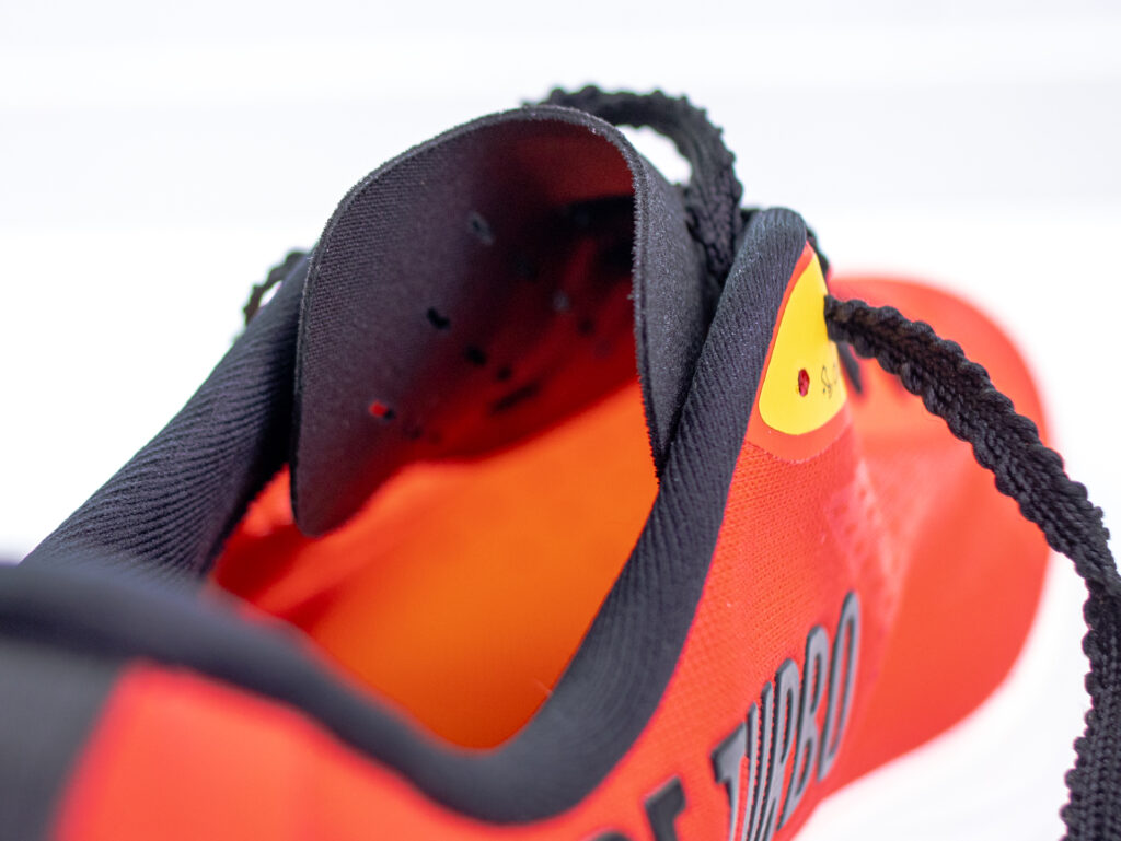La lengüeta es muy fina y suave, pensada para reducir peso. Está separada del upper, por lo que es importante acomodarla bien al ponerte la zapatilla para evitar dobleces.