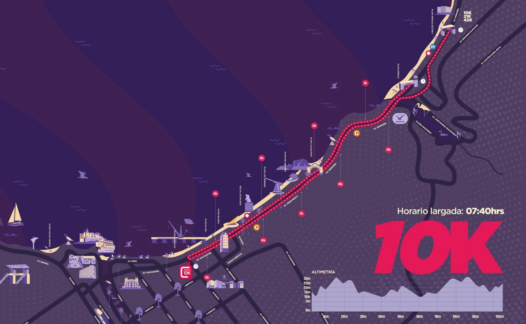 - 10K: recorrido por Av. Borgoño, Av. Jorge Montt y Av. San Martín hasta 10 Norte, con retorno hacia Reñaca.
